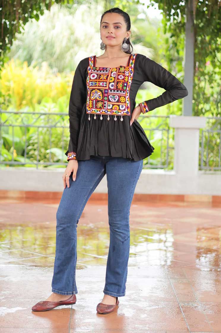 Kutchi Gamthi Work Peplum Top – Black | Roman Fabric